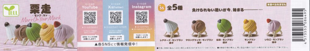 「レアチーズ・モンブラン選手」「マロングラッセ・モンブラン選手」「抹茶・モンブラン選手」「モンブラン選手」「いちご・モンブラン選手」の全5種です。