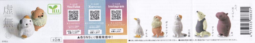 「三毛猫」「アヒル」「ポメラニアン」「アリクイ」「カバ」の全5種です。